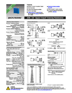 Nom : BOURNS – 3296W-1-202LF – Modèle: 3296 – Style: W – Valeur: 2K – Tolérance: 10% – Puissance: 500mW – Coef. Temp.: +/-100ppm/°C – Type: Multitours – Montage: Traversant – Emballage: Tube – Conditionnement: 50 – RoHS: RoHS