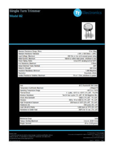 TT ELECTRONICS – 82P 100K – Modèle: 82 – Style: P – Valeur: 100K – Tolérance: 10% – Puissance: 500mW – Coef. Temp.: +/-100ppm/°C – Type: Monotour – Montage: Traversant – Emballage: Tube – Conditionnement: 50 – RoHS: RoHS
