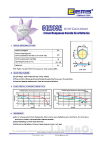 EEMB CORP USA – CR2032 – Code CEI: CR2032 – Code ANSI: 5004LC – Type: Lithium – Dimensions: 20×3,2mm – Tension: 3V – Capacité: 210mA – Conditionnement: 20 – Emballage: Boite